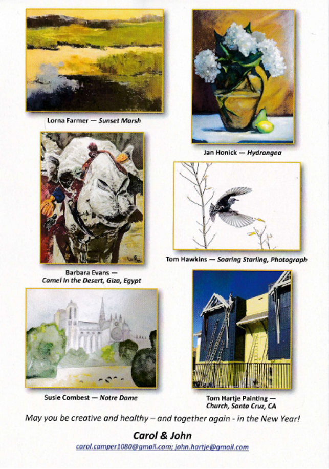 The first card reproduces a gorgeous landscape painting by our very talented buddy and John’s college roommate Philip Koch (rhymes with “watch.”) Phil is unrelated to the Koch (rhymes with “broke”) Brothers.